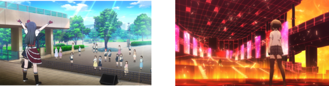 TVアニメのダンスシーン映像を館内大型ビジョン他で放映します!本編にも登場した大階段のある屋外
