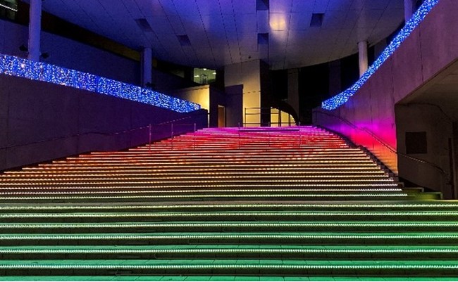 4. 屋外フェスティバル広場の大階段が虹色イルミネーションに
