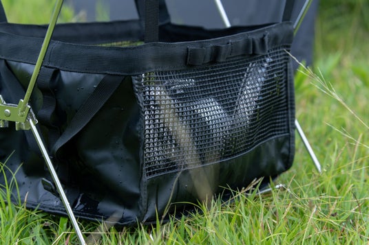 「エアドライ ハンギングシェルフ」は、洗って濡れた食器類を入れて置くことで、乾かすことができる、メッシュ素材のバッグ。