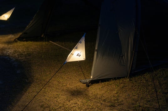 今回新たに登場した「ルミセイル」は、キャンプの夜に暗くなり見えなくなったガイロープにつまずいてしまうという、キャンパーにとっては“あるある”な問題を解決するためのギアです。