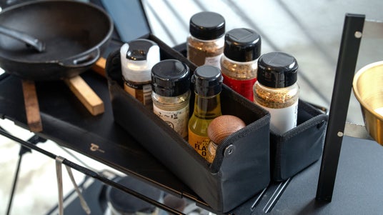ケースの内部には取り外し可能な仕切りがあり、スパイスを入れたままケースから取り出しが可能。そのままスパイススタンドとして使用できます。持ち運びだけでなく、キャンプキッチンでの使い勝手も考えられたアイテムです。