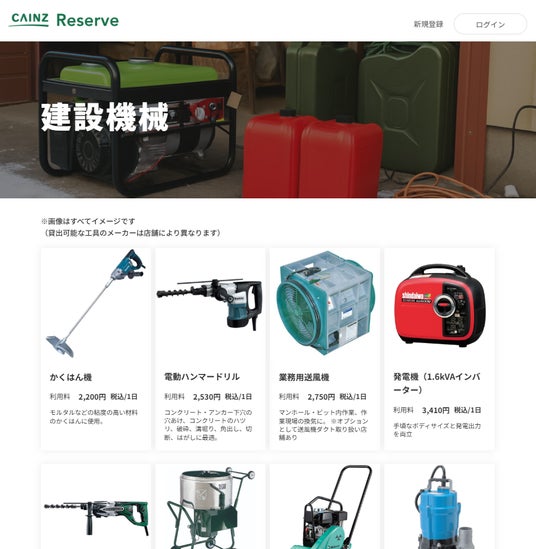 本サービスは、カインズが従来より提供してきた「レンタル工具」に加え、新たに建設機械をラインアップに拡充したものです。