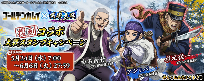 さらに、今回の新バージョンの稼働にあわせて2022年10月に実施したTVアニメ『ゴールデンカムイ』との復刻コラボイベントも5月24日(水)~6月20日(火)に前後半に分けて開催致します。