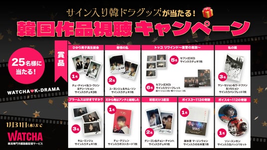 この度、韓流専門月額動画配信サービス「WATCHA(ウォッチャ)」は、2024年1月12日(金)から韓国作品を視聴するとサイン入り韓ドラグッズが当たる「韓国作品視聴キャンペーン」を実施いたします。