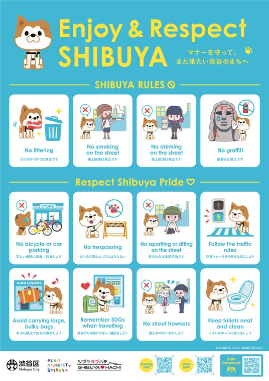 一般財団法人渋谷区観光協会(東京都渋谷区、代表理事:金山淳吾)は、渋谷区観光協会 公式キャラクター「SHIBUYA(ハート)HACHI(シブヤ ラブ ハチ)」を活用したマナーマーク、ポスターの無料ダウンロードおよび配布をスタートしましたのでお知らせいたします。