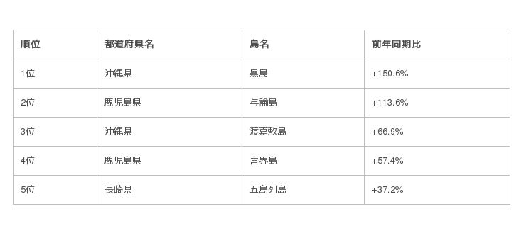 (=予約人数×泊数)を集計し、前年同期比の伸び率を算出(100人泊に満たない島は除く)。