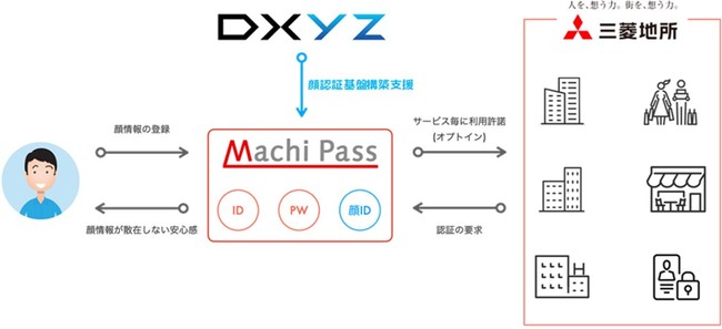 『デジタル』と『不動産』で価値を創造する企業、プロパティエージェント株式会社 (本社:東京 都新宿区、代表取締役社長:中西 聖)の子会社DXYZ株式会社(本社:東京都新宿区、代表取締役:中西 聖、取締役社長:木村 晋太郎)は、三菱地所株式会社(東京都千代田区、代表執行役 執行役社長 吉田 淳一)が開発する顔認証サービス連携基盤「Machi Pass FACE」へ顔認証プラットフォーム技術を構築し、三菱地所株式会社での実証実験を開始いたしましたのでお知らせいたします。