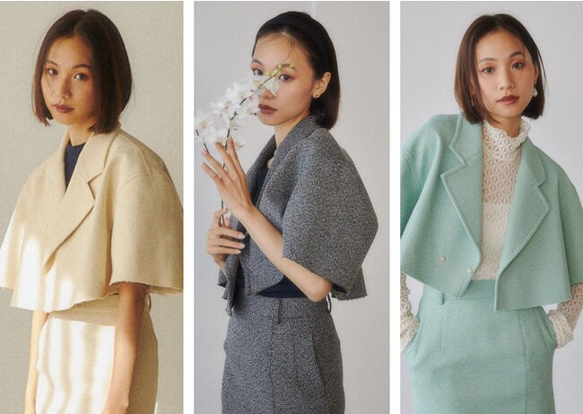 今季大注目のアイテムとして”Cape tweed jacket"と”Tweed long skirt”を、2023年3月3日(金)18:00より公式WEBストアにて発売開始。