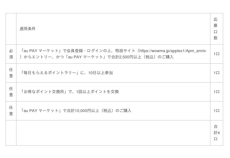 au PAY マーケット1周年記念キャンペーン(https://wowma.jp/applex1/Apm_anniv)