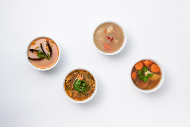 『忙しい時こそ栄養を 1食置き換えスープ生活』をコンセプトに、近年、時間に追われ、ついコンビニ弁当やレトルトで済ましがちな方々に向けて、 無添加にこだわる総料理長と、管理栄養士、パーソナルトレーナーが監修し、簡単調理で、無添加の栄養満点なスープをつくりました。