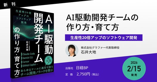 行政・企業の業務変革を推進する株式会社グラファー(本社:東京都渋谷区、代表取締役:石井大地、以下「グラファー」)は、2026年2月15日に日経BPから代表取締役である石井大地著の新刊書籍『AI駆動開発チームの作り方・育て方 生産性20倍アップのソフトウェア開発』を発刊したことをお知らせします。
