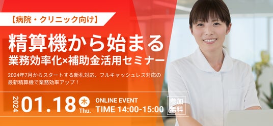 株式会社補助金ポータル(本社:東京都渋谷区、代表取締役:福井彰次)は東芝テック株式会社(本社:東京都品川区、代表取締役社長 錦織弘信)と株式会社インテクア(本社:東京都品川区、代表取締役 石原剛)と共に「精算機から始まる業務効率化×補助金活用セミナー」と題して無料オンラインセミナーを2024年1月18日木曜日14時より開催します。 Zoomでお気軽にご視聴いただけますので、ぜひご参加ください。