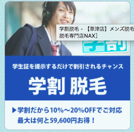 一生に一度の青春時代だからこそ、理想の自分で過ごしたいとは思いませんか?メンズ脱毛NAX草津店ではそんなあなたのサポートを学割という形でさせて頂きます。