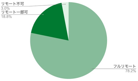 一方で、リモートワークに対応していない案件は2.97%とごくわずかです。TypeScriptの開発者にとって、リモートワークは標準的な選択肢の1つと言えるでしょう。