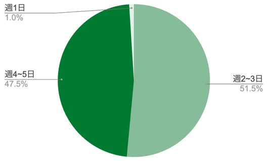 ただし、週1日の稼働は0.99%とごくわずかであり、TypeScriptの開発は、ある程度まとまった時間を確保することが求められる傾向にあると言えます。全体として、TypeScriptの開発者は、週2日以上の安定的な稼働が期待できる環境で働ける可能性が高いでしょう。