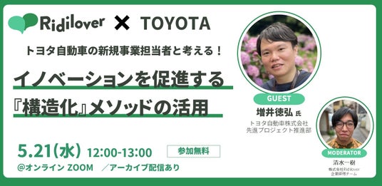 また今回、トヨタ自動車の新規事業担当者をゲストにお招きし、同社が新規事業を推進/支援のために実施している「BE creation」の概要や工夫ポイント、さらにはイノベーション促進における「構造化」メソッドの活用に関して、オンラインセミナーを開催いたします。ご興味のある方は下記のリンクをご参照ください。
