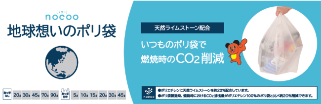 綿半グループのプライベートブランド商品開発を行っている綿半パートナーズ株式会社(本社:東京都新宿区 、代表取締役社長:野原勇)は、環境にやさしいゴミ袋を開発・製造する日本サニパック株式会社(本社:東京都渋谷区、代表取締役社長:井上充治)と「地球想いのポリ袋」を共同開発いたしました。従来のポリエチレン袋と比べ製造・燃焼時におけるCO2 排出量を約20%削減できる環境に配慮した商品で、2月より発売しています。