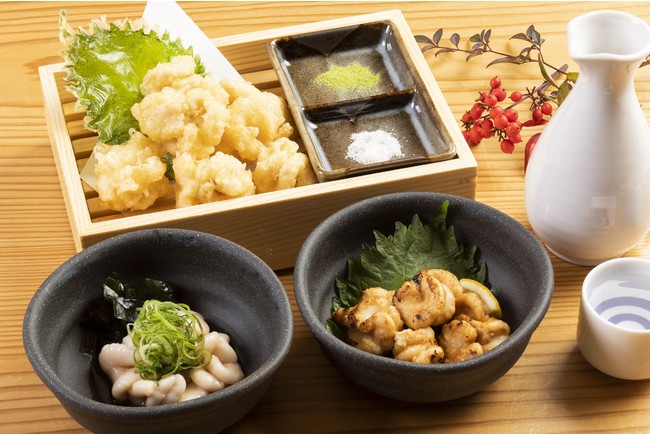 さらに、冬の名物である“白子”を使用した3つの新メニューも同日より期間限定で登場いたします。オリジナルポン酢を使用し、あっさりとお召し上がりいただける「白子ポン酢」、店内にて醤油で下味をつけてから焼きあげた「焼き白子」、店内で揚げたサクサクふわふわの「白子の天ぷら」と、寒い冬の時期に食べたくなる絶品の新メニューです。