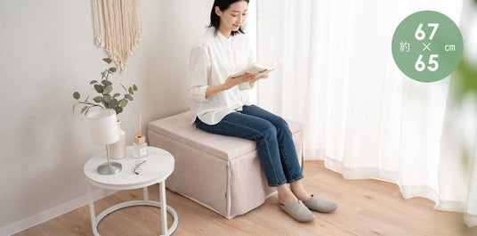 約幅67×奥行65cmのスツールサイズだから、普段はリビングやお部屋の一角に置いても圧迫感がありません。必要なときだけ広げて使えるので、スペースを有効活用できます。