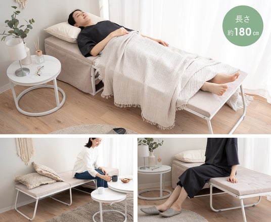 コンパクトな空間でも「座る・くつろぐ・眠る」 を一台で叶えます!「家具は増やしたくないけど、快適な暮らしは諦めたくない」そんなライフスタイルに寄り添う、新しいコンパクト家具の誕生です。