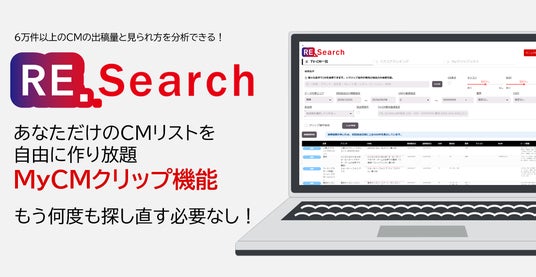 ご家庭に人体認識技術を搭載した機器を設置し、テレビスクリーンへの「注視」を測るREVISIO(リビジオ)株式会社(本社:東京都千代田区、代表取締役社長 郡谷康士、以下REVISIO)は、2024年9月17日(火)より、テレビCMの出稿量とCMの見られ方をワンツールで分析できるWebツール「RE.Search」にMy CMクリップ機能を搭載したことをお知らせします。この機能は、分析したいCMをご自分の好きな分類でクリップでき、分析メモを保存できる機能です。これにより、何度も同じCMを検索することなく、スピーディーに分析ができるようになります。