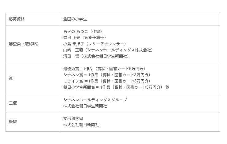 今回の応募締切は9月8日(金)必着、入選発表は12月8日(金)朝日小学生新聞紙上および「いつもありがとう」作文コンクール特設サイトで行います。