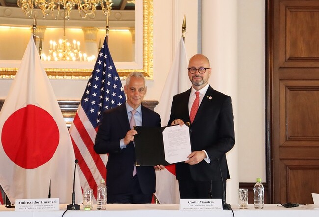 (左から、駐日米国大使 ラーム・エマニュエル様、当社 執行役員 最高営業責任者 兼 営業本部長 コスティン・マンドレア)