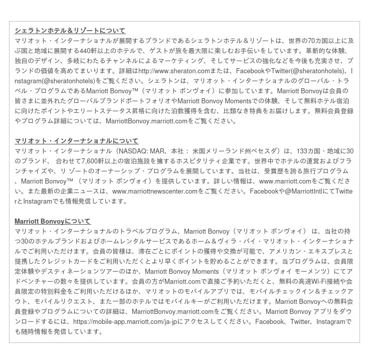 横浜ベイシェラトン ホテル&タワーズでの対策についてはホームページにもご案内しております。こちらも併せてご確認ください。https://yokohama-bay-sheraton.jp/news/13/