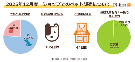 “Pets always come first”を理念に掲げるペッツファーストホールディングス株式会社(本社:東京都目⿊区、社長:正宗 伸麻)は、ペットショップ「Pʼs-first」直営店の 2025年12月度における流通過程の重要指標をご報告いたします。