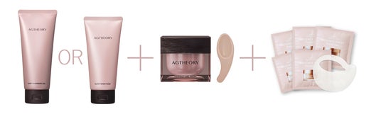 新しくなったエイジーセオリーのクレンジングと洗顔からお好きなアイテムをお選びいただける、夏に嬉しいスペシャルケアセット。「エイジーセオリー パーフェクトジェルマスク」、「アクシージア ビューティーアイズ エッセンスシート プレミアム プラス」5回分がセットになり、「エイジーセオリー」新スキンケアラインとアクシージアのアイコン製品をお得にお試しいただくことができます。