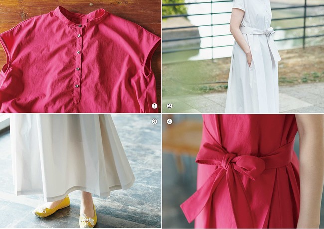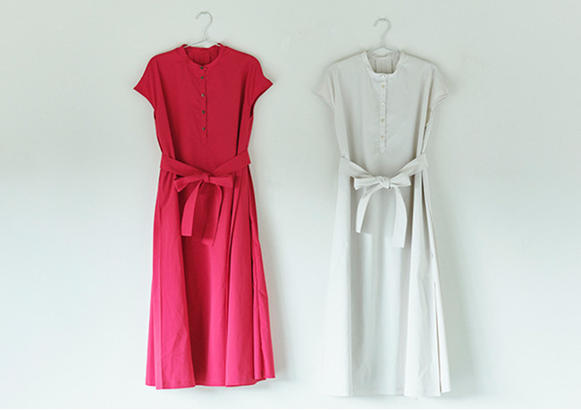 接触冷感でシワになりにくい生地を贅沢に使い、リボンベルトでのシルエットチェンジが簡単に!「リラックス」と「きれいめ」、一枚で両方を楽しめちゃいます。