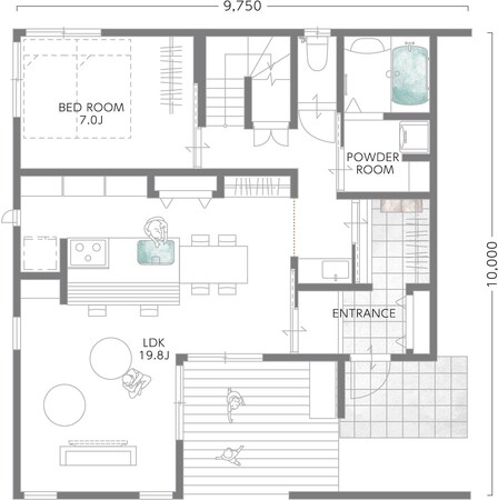1.主寝室や水廻りを1階に集約したことにより、子どもが小さいときは「1階のみで生活が完結できる間取り」