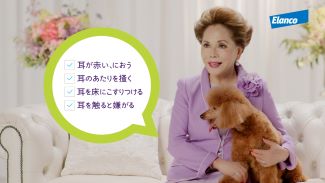 エランコジャパンでは、犬の外耳炎症例が増える季節に合わせ、外耳炎の啓発活動を行っており、本CMでは、愛犬家であり、動物愛護活動にも注力するデヴィ夫人が、愛犬のモカちゃんと共に出演し、犬の「外耳炎のサイン」を通じて気づきや注意を促すCMとなっております。