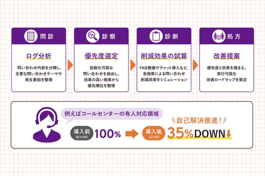 サービス・ライフサイクルの課題解決を支援するポールトゥウィン株式会社(本社:愛知県名古屋市、代表取締役CEO:志村 和昭、以下「ポールトゥウィン」)は、カスタマーサポートにおける「何から手をつけるべきかわからない」「効果が読めず投資判断ができない」「AI導入後の効果がでない」といった課題を解決する、ログ分析型の品質改善支援サービス「ドクターCS」の提供を開始しました。本サービスは、顧客対応ログをもとに問い合わせの発生要因を分析し、削減余地の試算から改善施策の提案までを一気通貫で伴走支援するものです。