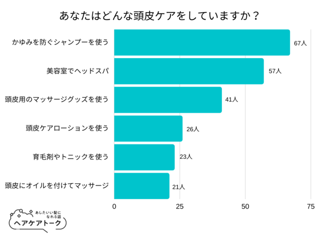 「どんな頭皮ケアをしていますか?」とアンケート調査した結果、1位は『かゆみを防ぐシャンプーを使う』でした。