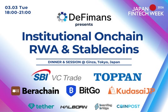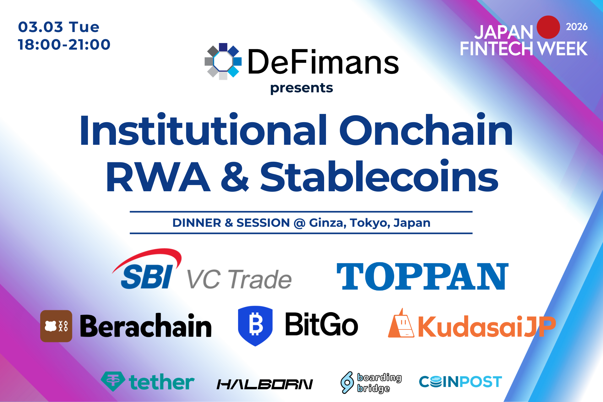 株式会社DeFimans(所在地:東京都港区、代表取締役:小野 暢思・佐藤 太思、以下「DeFimans」)は「Institutional Onchain - RWA & Stablecoins」を2026年3月3日(火)に開催いたします。