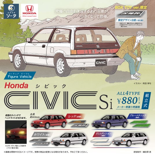 Honda×スタジオソータ「Figure Vehicle Honda CIVIC Si (ホンダ シビック)」 (カプセルトイ 500円(税込)、ボックストイ 880円(税込))を、販売いたします。