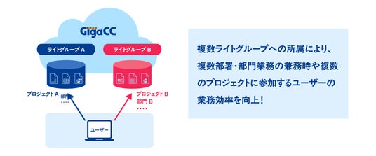 本機能を利用することで、部署・部門やプロジェクトごとに「ライトグループ」を作成し、ユーザーは所属するライトグループ内における限定的なファイルコラボレーションを行うことができます。
