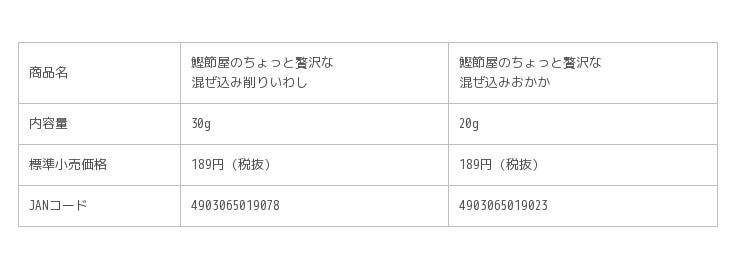 ヤマキ株式会社(本社:愛媛県伊予市 代表取締役社長:城戸善浩)は「鰹節屋のちょっと贅沢な混ぜ込み削りいわし30g」を発売します。