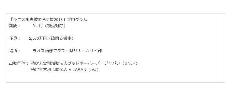 政府、経済界、NGO の連携によって2000 年に設立された緊急人道支援組織、ジャパン・プラットフォーム(東京都千代田区/以下、JPF)は、今なお6000人以上が避難生活を送っているラオスにおける水害被災者のため、8月3日に出動を決定しました。