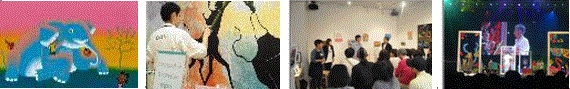 SHOGEN氏はアフリカ・タンザニアにて現地の絵画技法を学び、帰国後は展示会やイベント等で精力的に作品を発表しています。アフリカの動物と子供たちが愛らしくコミカルに触れ合う姿を、ペイント(塗料)を用い豊かな色使いで表現する独特の作風が注目を集め、近年テレビ・ラジオ等各種メディアでも取り上げられる若手ペイントアーティストです。