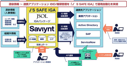 株式会社JSOL(以下、JSOL)は、企業におけるIDガバナンスおよびID管理(IGA:Identity Governance & Administration)の課題を解決するべく、包括的ソリューションとして「J's SAFE IGA」の提供を2025年3月19日より開始します。本ソリューションは、IGA領域で優位性の高いクラウドサービスである「Saviynt」を基盤としています。JSOLの豊富なID管理実績とノウハウを組み合わせてパッケージ化することで、短納期・低コスト・適正品質での導入を実現します。加えて、Active Directory(R)やSAP(R)やServiceNow(R)を導入している企業においては、高い自動連携を可能とします。