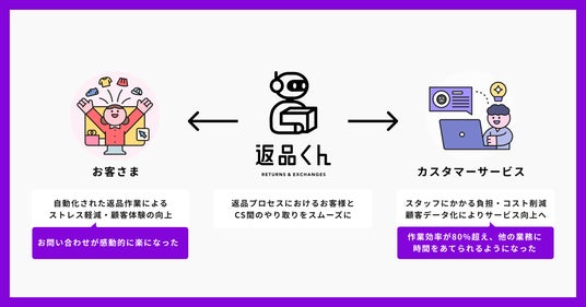 「返品くん」は、返品や交換のプロセスをシンプルにし、商品購入者とカスタマーサービスの負担をともに軽減できるシステムです。
