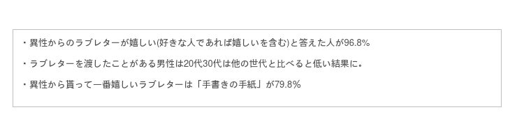 異性からもらって一番うれしいラブレターはどの世代でも「手書きの手紙」でした。