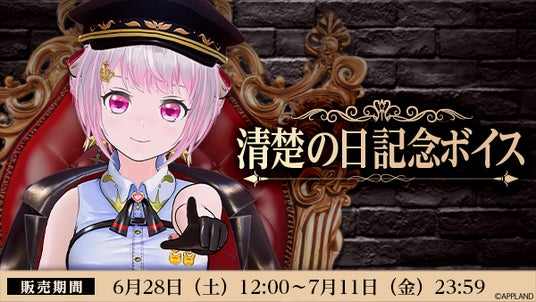 2025年6月28日(土)に清楚の日を迎える電脳少女シロの記念ボイスを、当社が運営する公式グッズ販売サイト(APPLAND OFFICIAL SHOP)にて販売いたします!ここでしかゲットできない限定ボイスをお楽しみください!