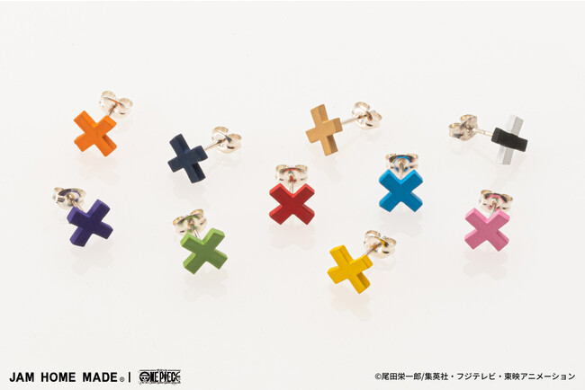 「フレンドシップピアス」は、"麦わらの一味" の「仲間の印」である ×(バツ)をモチーフに、10人それぞれのカラーリングで表現しました。