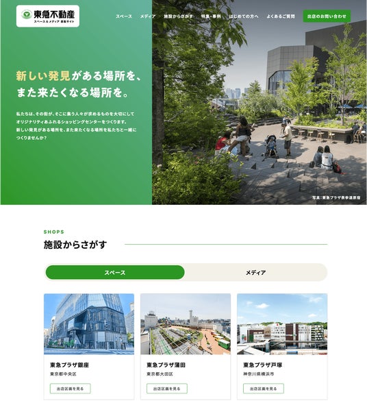 ▼「東急不動産 出店スペース&メディア 募集サイト」の画面イメージ