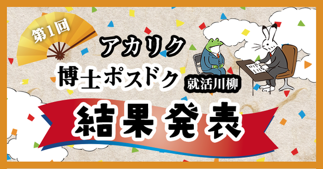 技術者・研究者のキャリア支援に特化した事業を15年にわたって続けている株式会社アカリク(本社:東京都渋谷区、代表取締役:山田諒、以下 アカリク)は、博士・ポスドクの就職活動にまつわる川柳を広く募集し、投票によって入選作品を決定する「アカリク博士ポスドク就活川柳」を実施し、投票の結果、入選作品が決定いたしましたのでお知らせいたします。