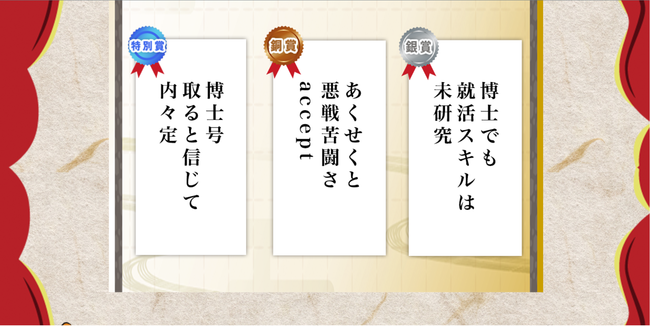 銀賞:博士でも 就活スキルは 未研究