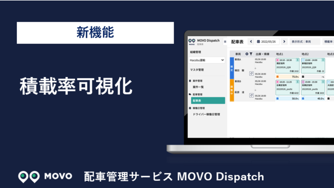 「運ぶを最適化する」をミッションとして、企業間物流の最適化を目指す株式会社Hacobu(ハコブ、本社:東京都港区、代表取締役社長CEO 佐々木太郎、以下「Hacobu」)は、配車管理サービス MOVO Dispatch(ムーボ・ディスパッチ)に、積載率可視化機能を追加しました。これにより、配送地点を経るごとに変化する車両の積載率を把握することができ、配送効率の向上につなげることができます。Hacobuは、輸配送の最適化を実現するために、引き続き機能開発を行っていきます。